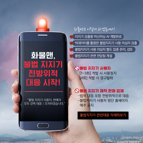 ÀÌ¿¡ ¢ßȹ°¸ÇÀº Áö³ ÀÏ ³â¿¡ °ÉÃÄ 'ºòµ¥ÀÌÅ͸¦ Ȱ¿ëÇÑ ºÒ¹ý ÁöÁö±â »ç¿ë ÀǽÉÀÚ °ËÃâ¿ë ¸Ó½Å·¯´× AI' °³¹ßÀ» ¿Ï·áÇß´Ù. ÀÌÈÄ Áö³ 2¿ù 19ÀÏ Àü¹æÀ§Àû ´ëÀÀÀ» ¾Ë¸° µÚ ¡®ºÒ¹ýÁöÁö±â Àü´ã ÆÀ °³¼³¡¯, ¡®ÀǽÉÀÚ µ¥ÀÌÅÍ ÁýÁß °ü¸®¡¯¸¦ ÅëÇØ ÀÌ¿ë Á¤Áö ¹× °Á¦ Å»Å𸦠½ÃÇà ÁßÀÌ´Ù. ÀÚ¼¼ÇÑ ´ëÀÀ ³»¿ë°ú »ç¿ëÀÚ ¸®½ºÆ®´Â ¸ÅÁÖ È¹°¸Ç ȨÆäÀÌÁö¿Í ³×À̹ö, ´ÙÀ½ ȹ°¸Ç °ø½Ä Ä«Æä¸¦ ÅëÇØ °øÁö»çÇ×À» ÅëÇØ °ø°³Çϰí ÀÖ´Ù.
