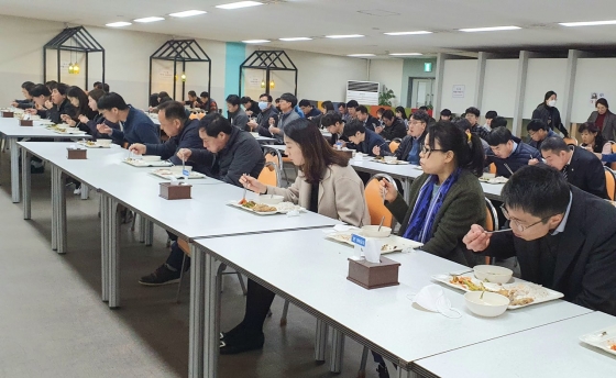 ½Ã´Â ÀÌ¿Í °ü·Ã, 23ÀϺÎÅÍ ½Ãû±¸³» ½Ä´çÀ» ÀÌ¿ëÇÏ´Â Á÷¿øµéÀÌ ½ÄŹÀÇ ¸ÂÀºÆí ÀÚ¸®¸¦ ºñ¿öµÐ ä ÇÑÂÊ ¹æÇâ¿¡¼¸¸ ¾É¾Æ ½Ä»çÇÒ ¼ö ÀÖµµ·Ï Çß´Ù.(»çÁø ÷ºÎ)