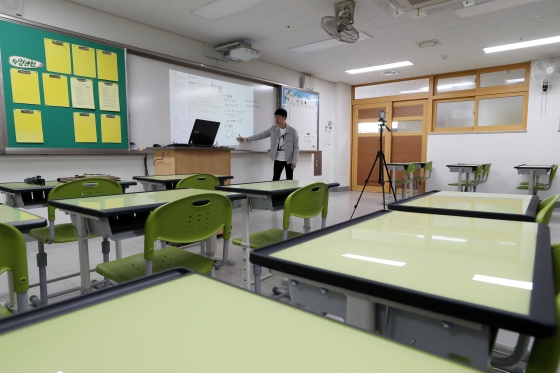 | ¡ã혻Äڷγª19 ¿©ÆÄ·Î Àü±¹ ÃÊ¡¤Áß¡¤°í±³ÀÇ °³ÇÐÀÌ ¹Ì·ïÁø °¡¿îµ¥ 30ÀÏ ¿ÀÀü ¼¿ï µ¿´ë¹®±¸ ÈÖºÀ°íµîÇб³¿¡¼ ±³»ç°¡ ¿Â¶óÀÎ ¿ø°Ý¼ö¾÷À» À§ÇÑ ¼ö¾÷ ¿µ»óÀ» ³ìÈÇϰí ÀÖ´Ù./»çÁø=¸Ó´ÏÅõµ¥ÀÌ Á¦°ø |