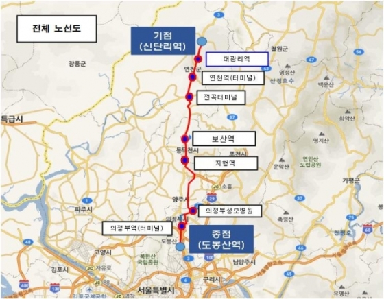 ¿¬Ãµ±º ½Åꏮ¿ªºÎÅÍ µµºÀ»ê¿ª±îÁö ¿¬°áÇÏ´Â ÀÌ ¹ö½º´Â ½Åꏮ¿ªÀ» Ãâ¹ßÇØ ´ë±¤¸®¿ª, ¿¬ÃµÅ͹̳Î, Àü°îÅ͹̳Î, µ¿µÎõ º¸»ê¿ª°ú ÁöÇ࿪, ÀÇÁ¤ºÎ ¼º¸ðº´¿ø, ÀÇÁ¤ºÎ Å͹̳Î, ÀÇÁ¤ºÎ¿ª, ȸ·æ¿ª, ¸Á¿ù»ç¿ªÀ» °ÅÃÄ µµºÀ»ê¿ª ȯ½Â¼¾ÅͱîÁö ¿îÇàÇÑ´Ù.