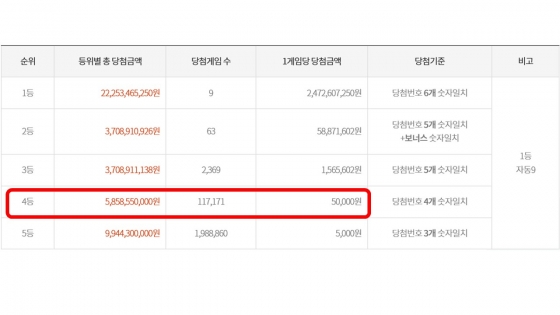 ·Î¶Ç 5µîÀº 5,000¿ø, 4µîÀº 5¸¸¿øÀ¸·Î °íÁ¤´ç÷±ÝÀ¸·Î Ã¥Á¤Çß½À´Ï´Ù.