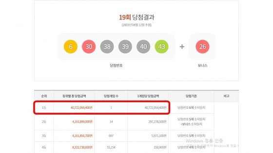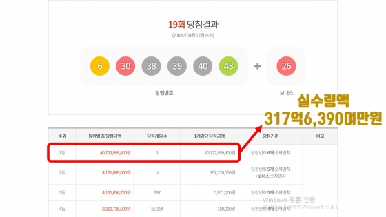 ½ÇÁ¦·Î ´ç÷±ÝÀÌ °¡Àå ³ô¾Ò´ø ·Î¶Ç 19ȸÂ÷ 1µî ´ç÷±ÝÀÌ 407¾ï2,295¸¸¿øÀ̾ú½À´Ï´Ù.