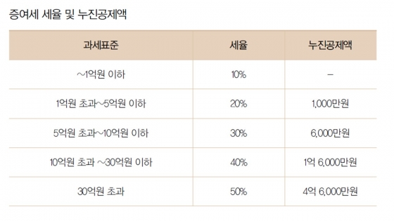 ÇÏÁö¸¸, À̸¦ ÃʰúÇϸé 1¾ï¿ø ÀÌÇÏ´Â 10%. 1¾ï Ãʰú 5¾ï¿ø ÀÌÇÏ´Â 20%, 5¾ï¿ø Ãʰú 10¾ï¿ø ÀÌÇÏ´Â 30%, 10¾ï¿ø Ãʰú 30¾ï¿ø ÀÌÇÏ´Â 40%ÀÇ ¼¼À²ÀÌ Àû¿ëµË´Ï´Ù.