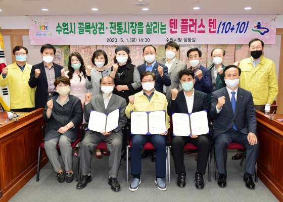 ¼ö¿ø½Ã¿Í ¼ö¿ø½Ã¼Ò»ó°øÀο¬ÇÕȸ, ¼ö¿ø½Ã»óÀο¬ÇÕȸ´Â 1ÀÏ ½Ãû »óȲ½Ç¿¡¼ ¡®¼ö¿ø½Ã °ñ¸ñ»ó±Ç¡¤ÀüÅë½ÃÀåÀ» »ì¸®´Â 10+10 ¾÷¹«Çù¾à¡¯À» ü°áÇϰí, Äڷγª19 »çÅ·ΠÀ§ÃàµÈ ¼Òºñ¸¦ ÃËÁøÇϱâ À§ÇØ Àû±ØÀûÀ¸·Î Çù·ÂÇϱâ·Î Çß´Ù.