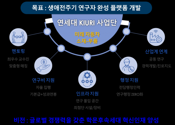¿¬¼¼´ë´Â ¹Ì·¡ÀÚµ¿Â÷¿ë ¼ÒÀç-ºÎǰ-Àåºñ ±â¼ú¿¡ ´ëÇÑ ¹Ú»ç±Þ Çõ½ÅÀÎÀç ¾ç¼ºÀ» ¸ñÇ¥·Î ¡®±ØÇѹ°¼º ¼ÒÀç-ÃʰíºÎ°¡ ºÎǰ KIURI »ç¾÷´Ü¡¯À» ¿î¿µ ¿¹Á¤ÀÌ´Ù.