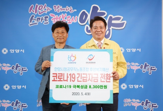 ȯ°æ¹ÌÈ¿øµéÀÌ ÁÖÃàÀ» ÀÌ·é ¾È¾ç½Ãû °ø¹«Á÷³ëµ¿Á¶ÇÕ¿ø°ú ¾È¾ç½Ã °£ Äڷγª19 »çÅ ±Øº¹À» À§ÇÑ ÈÄ»ýº¹Áö¿¹»ê ±ä±ÞÀÚ±Ý Àüȯ Çù¾à½ÄÀÌ 4ÀÏ ½Ãû »óȲ½Ç¿¡¼ ¿·È´Ù.