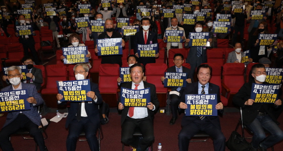 ¹Î ÀÇ¿øÀº 11ÀÏ ¿ÀÈÄ 2½Ã ±¹È¸ÀÇ¿øÈ¸°ü ´ëȸÀǽǿ¡¼ '4¡¤15ÃѼ± ÀÇȤ Áø»ó±Ô¸í°ú ±¹¹ÎÁÖ±Çȸº¹ ´ëȸ'¸¦ ¿°í ÃѼ± Á¶ÀÛÀ» ÁÖÀåÇß´Ù. ¹Î ÀÇ¿øÀº ÀÌ ÀÚ¸®¿¡¼ "¾à¼Óµå¸° ¼¼»óÀÌ µÚÁý¾îÁú Áõ°Å¸¦ ³»³õ°Ú´Ù"¸ç "¼ÃÊÀ» »çÀüÅõÇ¥ ¿ëÁö°¡ ºÐ´çÀ» Áö¿ª¿¡¼ ¹ß°ßµÆ°í ºÐ´ç°© ÅõÇ¥¿ëÁö°¡ ºÐ´çÀ»¿¡¼ ¹ß°ßµÆ´Ù"°í ¸»Çß´Ù.