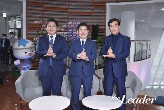 | ¡ã ÀÓº´Åà ½ÃÈï½ÃÀå(¿ÞÂÊ Ã¹¹øÂ°)ÀÌ ÀÎÅÍºä ¸¶Ä¡°í ´öºÐ¿¡ 縰Áö ¼Õ¸ð¾çÀ» ÇÏ¸ç Æ÷Á ÃëÇϰíÀÖ´Ù./»çÁø=½ÃÈï½Ãû |