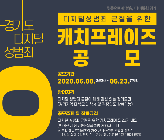 Á¢¼ö ±â°£Àº 6¿ù 23ÀϱîÁö¸ç µðÁöÅÐ ¼º¹üÁË ±ÙÀý¿¡ °ü½É ÀÖ´Â °æ±âµµ¹ÎÀ̳ª °æ±âÁö¿ª ´ëÇлý, Á÷ÀåÀÎÀº ´©±¸³ª Âü¿©ÇÒ ¼ö ÀÖ´Ù. Á¢¼ö´Â ¿Â¶óÀο¡¼ ¹Ù·Î ¶Ç´Â QRÄÚµå Á¢¼Ó ÈÄ ¿Â¶óÀο¡¼ °¡´ÉÇÏ´Ù. ÀÚ¼¼ÇÑ »çÇ×Àº °æ°¡¿ø ȨÆäÀÌÁö°Ô½ÃÆÇÀ» Âü°íÇÏ¸é µÈ´Ù.