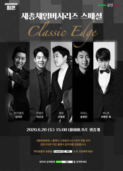 (Àç)¼¼Á¾¹®Èȸ°ü(»çÀå ±è¼º±Ô)Àº 2020 ¼¼Á¾ üÀÓ¹ö½Ã¸®Áî ½ºÆä¼È ÇÁ·Î±×·¥ <Ŭ·¡½Ä ¿§Áö Classic Edge>¸¦ ¹«°üÁß ¿Â¶óÀÎ »ýÁß°è °ø¿¬À¸·Î ¼±º¸ÀδÙ. °ø¿¬Àº Áö³ 5¿ù±îÁö ÁøÇàµÈ <Èû³»¶ó ÄܼƮ>ÀÇ ¿¬Àå¼±À¸·Î, ¼¼Á¾¹®Èȸ°üȸ°ü ¡¿ Ŭ·¡½Ä½ºÆä¼È¸®½ºÆ® 5ÀÎÀÌ ¶æÀ» ¸ð¾Æ Äڷγª19 Àå±âÈ·Î ¿©ÀüÈ÷ Ȱ¹ßÇÑ °ø¿¬È°µ¿ÀÌ Èûµç Ŭ·¡½Ä °ø¿¬°è¸¦ ÀÀ¿øÇϰíÀÚ ±âȹµÇ¾ú´Ù.