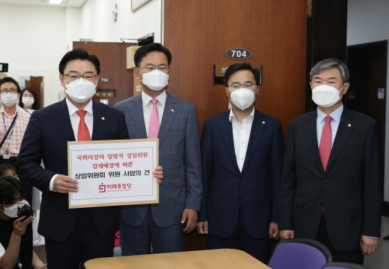 | ±è¼º¿ø ¹Ì·¡ÅëÇÕ´ç ¿ø³»¼ö¼®°ú ´ç ÀÇ¿øµéÀÌ 16ÀÏ ¿ÀÀü ¼¿ï ¿©Àǵµ ±¹È¸ ÀÇ»ç°ú¿¡¼ »óÀÓÀ§¿øÈ¸ À§¿ø °Á¦¹èÁ¤¿¡ µû¸¥ »çÀӰ踦 Á¦ÃâÇϰí ÀÖ´Ù./»çÁø=´º½º1 |