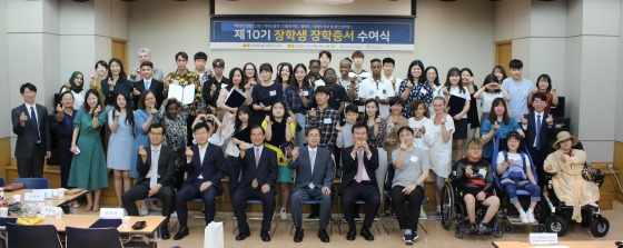 | ¡ãÀåÇÐÁõ¼ ¼ö¿©½ÄÈÄ µ¿Ãµ Â÷ÇѼº ÀÌ»çÀåÀÌ Âü°¡ÀÚµé°ú ±â³äÃÔ¿µÀ» Çϰí ÀÖ´Ù./»çÁøÁ¦°ø=¹ý¹«¹ýÀÎ ÅÂÆò¾ç Àç´Ü¹ýÀÎ µ¿Ãµ |