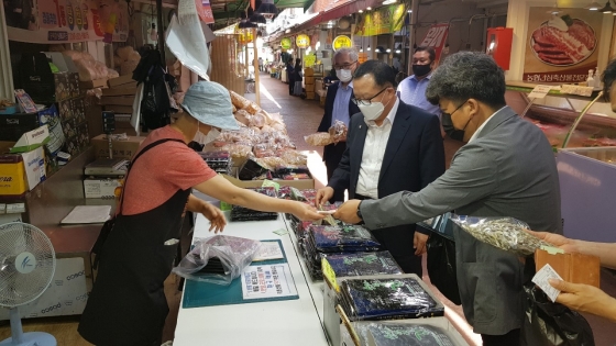 ÁøÈï¿ø ÀÓÁ÷¿øÀº ¡®´öºÐ¿¡ 縰Áö¡¯¿¡ µ¿Âü ÈÄ È£°èÁ¾ÇÕ½ÃÀå³» ½Ä´ç ÀÌ¿ë, °Ç¾î¹° ¹× ä¼Ò µî °³ÀÎ ½ÄÀÚÀ縦 ±¸¸ÅÇÔÀ¸·Î½á Äڷγª19·Î ¾î·Á¿òÀ» °Þ°í ÀÖ´Â ÀüÅë½ÃÀå »óÀεéÀ» À§·ÎÇß´Ù.