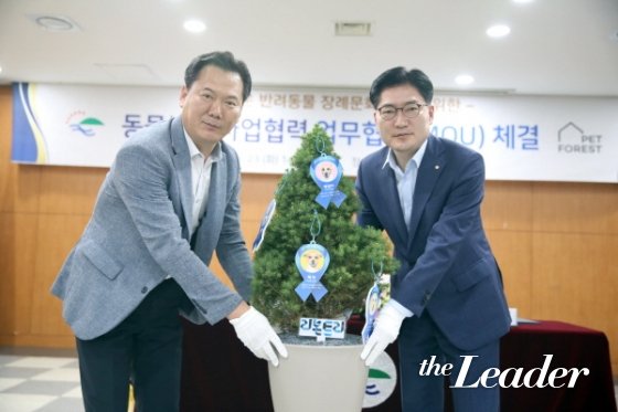 ÀÌÁ¤ÈÆ °µ¿±¸Ã»ÀåÀÌ 23ÀÏ ¿ÀÈÄ 2½Ã ±¸Ã» 3Ãþ ¼ÒȸÀǽǿ¡¼ ¹Ý·Áµ¿¹° Àå·Ê¾÷ü ¡®ÆêÆ÷·¹½ºÆ®¡¯¿Í ¾Æ¸§´Ù¿î ¹Ý·Áµ¿¹° Àå·Ê¹®È È®»êÀ» À§ÇÑ ¡®µ¿¹°º¹Áö »ç¾÷Çù·Â ¾÷¹«Çù¾à(MOU)¡¯À» ¸Î¾ú´Ù. ÀÌ ÀÚ¸®¿¡¼ ÀÌ ±¸Ã»ÀåÀº »ç¸ÁÇÑ À¯±â°ßÀ» ¾ÖµµÇÏ´Â Ã߸ð»çÁøÀ» ºÎÂøÇÑ Ã߸ð¸ñ(¸®º»Æ®¸®)À» ÀÌ»óÈï ÆêÆ÷·¹½ºÆ® ´ëÇ¥À̻翡°Ô Àü´ÞÇß´Ù. Çù¾à¿¡ µû¶ó À̵éÀº À¯±âµ¿¹° Àå·Ê Áö¿ø(ÈÀå ¹× ¼ö¸ñÀå), ¹Ý·Áµ¿¹° Àå·Ê ÇÒÀÎ, ¹Ý·Áµ¿¹° Àå·ÊÁöµµ»ç ¾ç¼º, ¹Ý·ÁÁֹΠ´ë»ó Ã߸ðÀ½¾Çȸ¡¤Æê·Î½º ÁõÈıº ±Øº¹°¿¬ µî ´Ù¾çÇÑ »ç¾÷À» °øµ¿ ÃßÁøÇÒ ¿¹Á¤ÀÌ´Ù.
