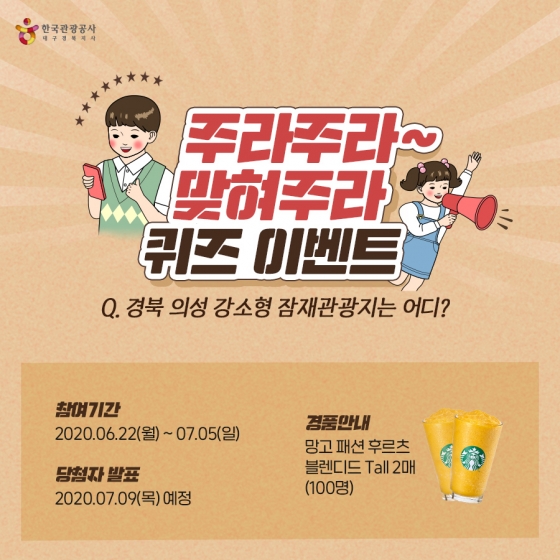 À̺¥Æ®´Â ´©±¸³ª Âü¿© °¡´ÉÇϸç, °³ÀÎ SNS ä³Î¿¡ À̺¥Æ® ³»¿ëÀ» °øÀ¯ÇÑ ÈÄ #ÀǼº¿©Çà, #ÀǼº °¡º¼ ¸¸ÇÑ °÷ µîÀÇ ÇØ½Ãű׸¦ ÀÛ¼ºÇÏ¿© ¾÷·ÎµåÇϰí, ÇØ´ç URLÀ» °¼ÒÇü ÀáÀç°ü±¤Áö Á¤´ä°ú ÇÔ²² ÀÀ¸ðÇÏ¸é µÈ´Ù. ÀÀ¸ðÀÚ Áß 100¸íÀ» ¼±¹ßÇØ ¿©¸§Ã¶ ¹«´õÀ§¸¦ ³¯¸± ¼ö ÀÖ´Â ½Ã¿øÇÑ À½·á ±âÇÁƼÄÜÀ» Á¦°øÇÒ ¿¹Á¤ÀÌ´Ù.