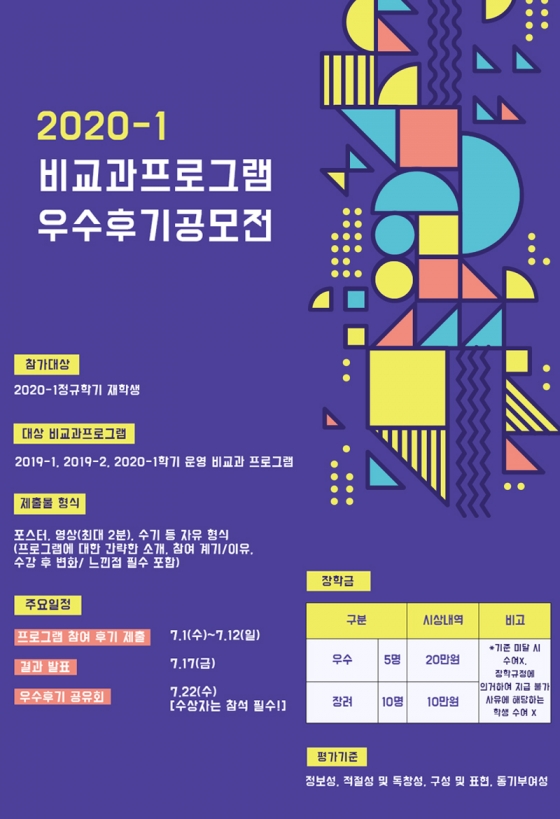 °ø¸ð ½ÅûÀº 2020-1 Á¤±ÔÇбâ ÀçÇлýÀÌ¸é ´©±¸³ª °¡´ÉÇÏ´Ù. Á¦Ã⠱ⰣÀº 7¿ù 1ÀϺÎÅÍ 12ÀϱîÁöÀÌ´Ù.