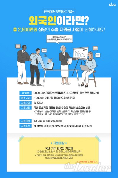 ¼¿ï½Ã¿Í ¼¿ï½Ã ÀÏÀÚ¸® âÃâÀÇ ÁÖ¿ªÀÎ Áß¼Ò±â¾÷Áö¿ø±â°ü SBA(¼¿ï»ê¾÷ÁøÈï¿ø, ´ëÇ¥ÀÌ»ç À念½Â)°¡ ±¹³» Áß¼Ò±â¾÷ÀÇ ÇØ¿Ü ¼öÃâ ÆÇ·Î È®º¸¸¦ Àû±ØÀûÀ¸·Î Áö¿øÇϱâ À§ÇØ ¡®2020³âµµ ±¹Á¦¹«¿ªÀÎÁ¾ÇÕºñÁî´Ï½ºÁö¿ø¼¾ÅÍ ÇØ¿ÜÆÇ·Î Áö¿ø»ç¾÷¡¯À» ±¹³» °ÅÁÖ ¿Ü±¹ÀÎ ¹«¿ª±â¾÷ ´ë»óÀ¸·Î ¿î¿µÇÑ´Ù.