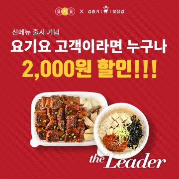 ±èÃæ±â²É»ï°ãÀÌ ½Å¸Þ´º Ãâ½Ã ±â³äÀ¸·Î 6¿ù ÇÑ ´Þ°£ ¿ä±â¿ä ÁÖ¹® ½Ã Àü ¸Þ´º 2,000¿ø ÇÒÀÎÀ» ÁøÇàÇß´Ù.