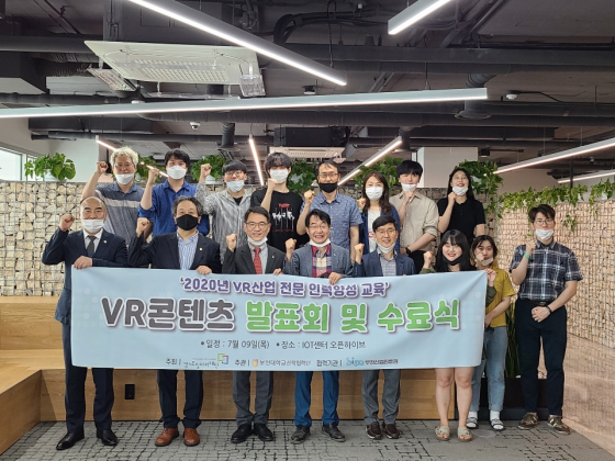 ¹®Áø¿µ °æ±âµµÀÏÀÚ¸®Àç´Ü ´ëÇ¥ÀÌ»ç´Â ¡°4Â÷ »ê¾÷ À¯¸ÁºÐ¾ßÀÎ VR»ê¾÷¿¡ Àü¹® ÀηÂÀ» ¾ç¼º, ¹èÃâÇÏ°Ô µÅ ±â»Ú´Ù¡±¸ç ¡°¼ö·á»ýµéÀÌ ÃßÈÄ VR»ê¾÷ Àü¹Ý¿¡ »õ·Î¿î Çõ½ÅÀ» À̲ô´Â ¼ÒÁßÇÑ ÀÎÀç°¡ µÅ ÁÖ±æ ¹Ù¶õ´Ù¡±°í ¸»Çß´Ù.