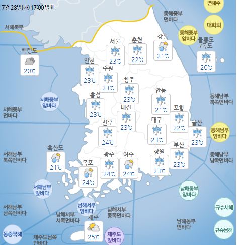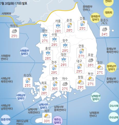 °æ±âºÏºÎ¿Í °¿øºÏºÎ´Â Èå·ÁÁ® ºñ°¡ ¿À°Ú°í, Àü¶óµµ¿Í °æºÏ³²ºÎ, °æ³²Àº È帮°í ¼Ò³ª±â°¡ ³»¸®°Ú´Ù. Á¦ÁÖµµ´Â ±¸¸§¸¹°Ú´Ù.