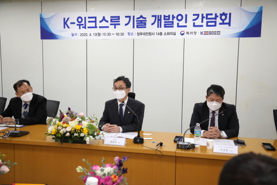 | ¹Ú¿øÁÖ Æ¯ÇãûÀåÀÌ 4¿ù 13ÀÏ ¿ÀÈÄ Á¤ºÎ´ëÀüû»ç¿¡¼ K-¿öÅ©½º·ç Âü¿©±â¾÷ ¹× ±â¼ú°³¹ßÀÚµé°úÀÇ °£´ãȸ¸¦ ÁÖÀçÇϰí ÀÖ´Ù./»çÁø=ƯÇãû Á¦°ø |