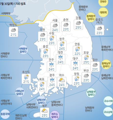 (ÇÏ´Ã »óÅÂ) ³»ÀÏ(8¿ù 1ÀÏ)±îÁö Àü±¹ÀÌ ´ëü·Î È帮°ÚÀ¸³ª, Á¦ÁÖµµ´Â °¡²û ±¸¸§ ¸¹°Ú´Ù.