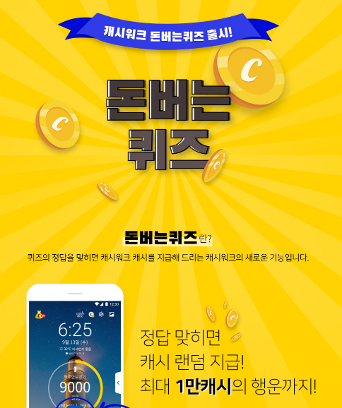 ij½Ã¿öÅ© µ·¹ö´Â ÄûÁî¶õ ´©±¸³ª ÄûÁ Ç®°í »ó±ÝÀÇ ÀϺθ¦ ·£´ýÇÏ°Ô Ä³½Ã·Î ¹ÞÀ» ¼ö ÀÖ´Â ¼ºñ½º´Ù. ij½Ã¿öÅ© ¾ÖÇø®ÄÉÀ̼ǿ¡¼ Á¤´äÀ» ÀÔ·ÂÇÏ¸é »ó±ÝÀÇ ÀϺθ¦ ·£´ýÇÏ°Ô Ä³½Ã·Î ¹ÞÀ» ¼ö ÀÖ´Ù. ÃÖ´ë 10,000ij½Ã±îÁö ´ç÷µÉ ¼ö ÀÖ´Ù. ÄûÁ Ǫ´Â µµÁß¿¡ »ó±ÝÀÌ ¸ðµÎ ¼ÒÁøµÇ¸é ij½Ã¸¦ ¹ÞÀ» ¼ö ¾ø´Ù.