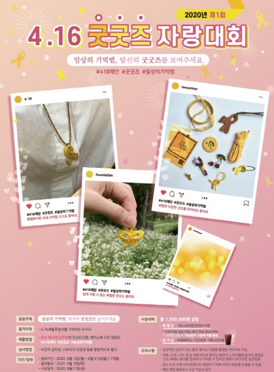 ƯÈ÷, ±Â±ÂÁî´Â »çȸÀû À̽´ µîÀ» ÁöÁöÇÏ°í ±â¾ïÇϱâ À§ÇÑ »óǰÀ¸·Î, ±ÂÁî ¼Òºñ°¡ »çȸÂü¿© ¹× ÈÄ¿øÀÇ ÇÑ ¹æ½ÄÀ¸·Î ÀÚ¸® ÀâÀº Çö»óÀ» ´ã°í ÀÖ´Ù. 4¡¤16Àç´Ü¿¡¼ ÁøÇàÇÏ´Â ±Â±ÂÁî ÀÚ¶û´ëȸ´Â 8¿ù ÇÑ ´Þ°£ ÁøÇàÇϸç, 4.16¼¼¿ùÈ£Âü»ç¸¦ ±â¾ïÇÏ´Â ´©±¸³ª Âü¿©°¡ °¡´ÉÇÏ´Ù. °á°ú´Â ¿À´Â 9¿ù 8ÀÏ 4¡¤16Àç´Ü ȨÆäÀÌÁö¿Í SNS¿¡ °ÔÀçµÉ ¿¹Á¤ÀÌ´Ù.
