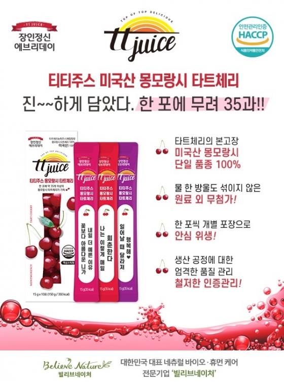 ¡®ÀåÀÎÁ¤½Å ¿¡ºê¸®µ¥ÀÌ Æ¼Æ¼ÁÖ½º ¸ù¸ð¶û½Ã ŸƮü¸®¡¯´Â ¹Ì±¹ ³» ŸƮü¸® ÃÑ »ý»ê·®ÀÇ 70%¸¦ Â÷ÁöÇÏ´Â ¡®Ã¼¸®ÀÇ µµ½Ã¡¯¿¡¼ ÀÚ¶õ ÃÖ»óÀÇ ¹Ì±¹»ê ¸ù¸ð¶û½Ã ´ÜÀÏ Ç°Á¾¸¸À» »ç¿ëÇÏ¿´À¸¸ç, ¹Ì±¹»ê ¸ù¸ð¶û½Ã ü¸® ³óÃà¾×ÀÇ ¼¼°èÀû ¼±µµ Àç¹è ¹× Á¦Á¶¾÷ü·Î »ý»ê °øÁ¤¿¡ ´ëÇÑ ¾ö°ÝÇÑ Ç°Áú°ü¸®¸¦ Çϰí ÀÖ´Â Cherry Central¿¡¼ Á¦Á¶ÇÑ Â÷º°ÈµÈ Á¦Ç°ÀÌ´Ù.