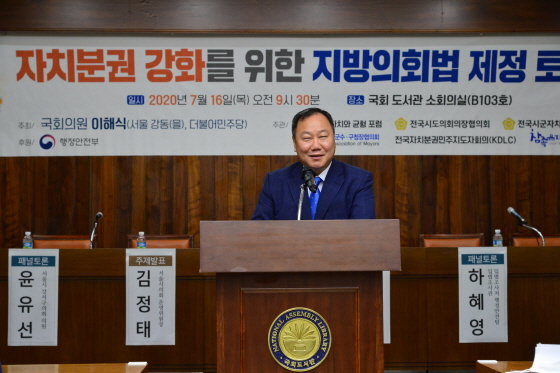 | Áö³ 7¿ù 16ÀÏ ±¹È¸µµ¼°ü¿¡¼ °³ÃÖµÈ ¡®ÀÚÄ¡ºÐ±Ç °È¸¦ À§ÇÑ Áö¹æÀÇȸ¹ý Á¦Á¤ Åä·Ðȸ¡¯¿¡¼ ±è ÀÇÀåÀÌ ¹ß¾ðÇϰí ÀÖ´Ù./»çÁø=¼¿ï½ÃÀÇȸ Á¦°ø |