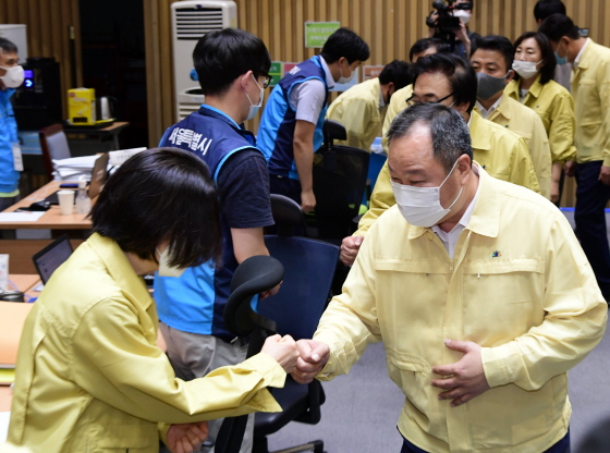 | ±èÀÎÈ£ ÀÇÀåÀÌ Áö³ 7¿ù 16ÀÏ Äڷγª19 ´ëÀÀ ÇöÀåÀ» ã¾Æ Àλ縦 ³ª´©°í ÀÖ´Ù./»çÁø=¼¿ï½ÃÀÇȸ Á¦°ø |
