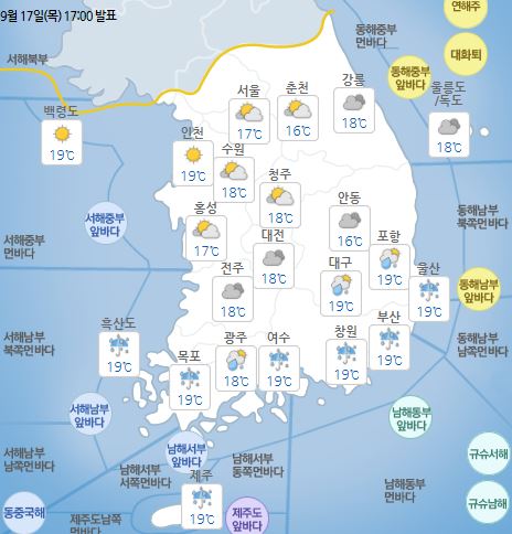 9¿ù 18ÀÏ ±Ý¿äÀÏ Àü±¹ ³»Àϳ¯¾¾ °³È²ÀÌ °ø°³µÆ´Ù.