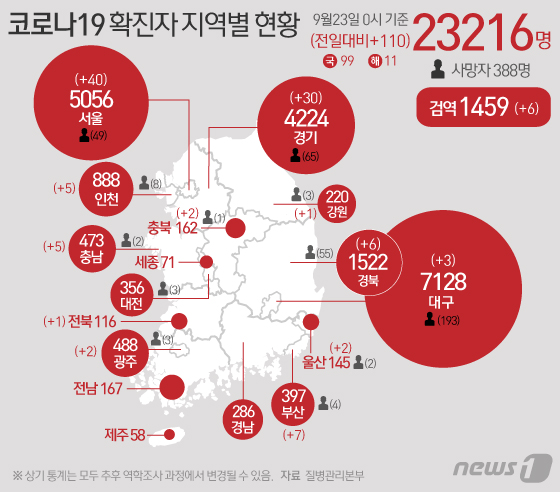 | 9¿ù23ÀÏ Äڷγª19 È®ÁøÀÚ Áö¿ªº° ÇöȲ/À̹ÌÁö=ÀÌÁö¿ø ´º½º1 µðÀÚÀÌ³Ê |