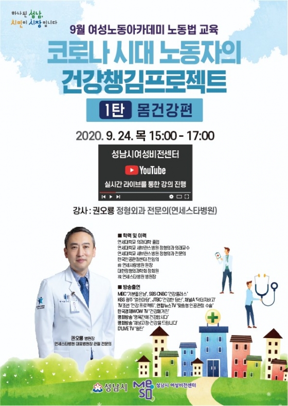 ¿©¼ººñÀü¼¾ÅÍÀÇ ¿©¼º³ëµ¿¾ÆÄ«µ¥¹Ì¿¡¼ ¡®Äڷγª ½Ã´ë ³ëµ¿ÀÚÀÇ °Ç°Ã¬±èÇÁ·ÎÁ§Æ®¡¯¶ó´Â ÁÖÁ¦·Î ¿À´Â 9¿ù 24ÀÏ ¿ÀÈÄ 3½Ã¿¡ ¸ö°Ç°ÆíÀ» Æí¼ºÇؼ ±Ç¿À·æ Á¤Çü¿Ü°ú Àü¹®ÀÇ(¿¬¼¼½ºÅ¸º´¿ø º´¿øÀå)À» ÃʺùÇØ À¯Æ©ºê »ý¹æ¼ÛÀ» ÁøÇàÇÑ´Ù.