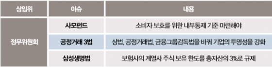 ÃÖ±Ù Á¤ºÎ°¡ µå¶óÀ̺긦 °É°í ÀÖ´Â ¡®°øÁ¤ °æÁ¦ 3¹ý¡¯µµ ÀïÁ¡À¸·Î ¶°¿À¸£°í ÀÖ´Ù. Áö³ 8¿ù ±¹¹«È¸ÀǸ¦ Åë°úÇØ ±¹È¸¿¡ Á¦ÃâµÈ ¡®°øÁ¤ °æÁ¦ 3¹ý¡¯Àº »ó¹ý, °øÁ¤°Å·¡¹ý, ±ÝÀ¶±×·ì°¨µ¶¹ýÀ» ¹Ù²ã ±â¾÷ÀÇ Åõ¸í¼ºÀ» °ÈÇϰڴٴ ÃëÁö´Ù.
