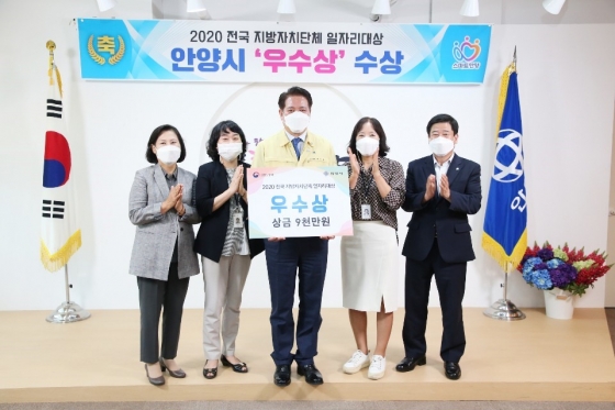 Áö³´Þ 29ÀÏ ¾È¾ç½Ã¿¡ µû¸£¸é ½Ã´Â °í¿ë³ëµ¿ºÎ ÁÖ°ü¡®2020³âµµ Àü±¹ÀÚÄ¡´Üü ÀÏÀÚ¸®´ë»ó¡¯¿¡¼ ¿ì¼ö»óÀ» ¼ö»óÇß´Ù. ´Ù.