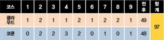 | ¡ã27ȦÀÇ 3°³ ÄÚ½º Áß Àü¹Ý¿¡´Â Ŭ¶ó¿ìµå ÄÚ½º¸¦ ÈĹݿ¡´Â ÄÚÄï ÄÚ½º¸¦ µ¹¾Ò´Ù. ÃÖÁ¾ ½ºÄÚ¾î´Â 97. |