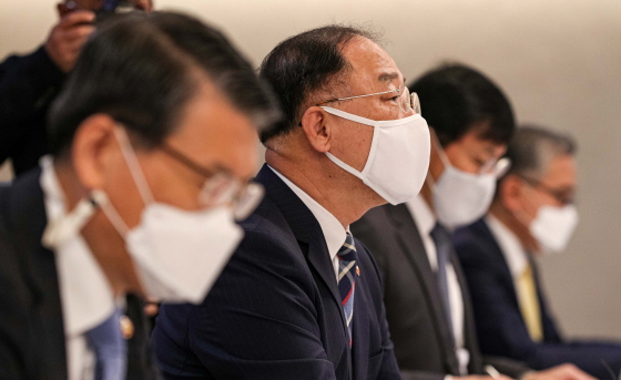 | È«³²±â °æÁ¦ºÎÃѸ®°¡ 28ÀÏ ¿ÀÀü ¼¿ï Á¾·Î±¸ Á¤ºÎ¼¿ïû»ç¿¡¼ ¿¸° 'Á¦9Â÷ ºÎµ¿»ê½ÃÀå Á¡°Ë °ü°èÀå°üȸÀÇ'¿¡¼ ¸ðµÎ¹ß¾ðÀ» Çϰí ÀÖ´Ù./»çÁø=´º½º1 |