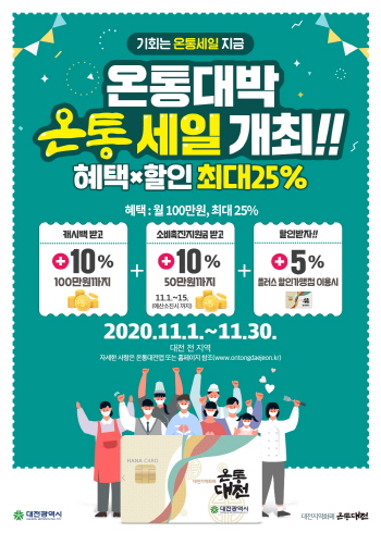 °¢ ÀÚÄ¡±¸¿¡¼ ¿ÂÅë´ëÀüÀ» 1¸¸¿ø ÀÌ»ó ÀÌ¿ëÇϸé Ãß÷À» ÅëÇØ ¸ÅÀÏ 500¸í¿¡°Ô ¿ÂÅë´ëÀü 1¸¸¿øÀ» Áö±ÞÇÑ´Ù. 11¿ù 11〜30ÀÏÀº Àü Áö¿ª ¿ÂÅë´ëÀü ÀÌ¿ëÀÚ·Î È®´ëÇØ ¿ÂÅë´ëÀüÀ» Á¦°øÇÑ´Ù.