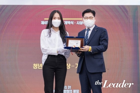 | ¡ãÁö³ 31ÀÏ, ¿Ã¸²ÇȰø¿ø¿¡¼ ¿¸° û³âÄ£ÈÇåÁ¤´ë»ó ½Ã»ó½Ä¿¡¼ ÀÌÁ¤ÈÆ °µ¿±¸Ã»ÀåÀÌ ¡®Á¾ÇÕ´ë»ó¡¯À» ¼ö»óÇÑ µÚ ±â³ä ÃÔ¿µÀ» Çϰí ÀÖ´Ù./»çÁø=°µ¿±¸ |