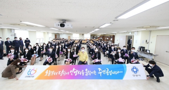À̳¯ ÇàÁ¤¡¤¼¼¹«¡¤»çȸº¹Áö¡¤º¸°Ç¡¤°£È£Á÷ µî 15°³ Á÷·Ä¿¡¼ ÃÑ 74¸íÀÌ ÀÓ¿ëµÆ´Ù. À̵鿡°Ô´Â ¾È¾ç½Ã °øÁ÷ÀÚ°¡ µÆÀ½À» ±â³äÇØ ÀÚ½ÅÀÇ À̸§ÀÌ »õ°ÜÁø µµÀåÀÌ ¼±¹°·Î Àü´ÞµÆ´Ù.