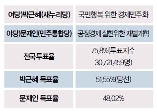 ¡®¹ÚÁ¤Èñ¡¯ ´ë ¡®³ë¹«Çö¡¯ÀÇ ´ë°á·Îµµ ºÒ·È´ø 18´ë ´ë¼±Àº ¹Ú±ÙÇý Èĺ¸ÀÇ ½Â¸®·Î ³¡ÀÌ ³µ´Ù. ¹Ú±ÙÇý ´ç¼±À¸·Î ¿ì¸®³ª¶ó´Â ÇåÁ¤»ç»ó ÃÖÃÊÀÇ ¿©¼º ´ëÅë·ÉÀÌ Åº»ýÇß°í, ¹ÚÁ¤Èñ Àü ´ëÅë·É¿¡ ÀÌ¾î ¹Ú±ÙÇýµµ ´ëÅë·ÉÀÌ µÇ¾î ÃÖÃÊÀÇ ºÎ³à ´ëÅë·ÉÀÌ µÆ´Ù.
