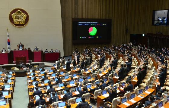 ±¹È¸°¡ 10ÀÏ ¿ÀÈÄ Àӽñ¹È¸ º»È¸ÀǸ¦ ¿¾î ¾ß´çÀÇ °ÅºÎ±ÇÀ» ¹«·ÂÈÇÏ´Â °íÀ§°øÁ÷ÀÚ¹üÁ˼ö»çó¹ý(°ø¼öó¹ý) °³Á¤¾ÈÀ» Àç¼® 287¼® Áß Âù¼º 187¸í, ¹Ý´ë 99¸í, ±â±Ç 1¸íÀ¸·Î °¡°á½ÃÄ×´Ù. ¿©´çÀº °ø¼öóÀÇ Ãâ¹üÀ¸·Î ±Ç·ÂÃþÀÇ ºÒ¹ýÀû Ư±Ç°ú ºÒÇÕ¸®ÇÑ °üÇàÀÌ »ç¶óÁú °ÍÀ¸·Î ±â´ëÇÑ´Ù°í ¹àÈù ¹Ý¸é, ¾ß´çÀº ¿©´çÀÇ ¸·¹«°¡³» ±Ç·ÂÀ¸·Î °³Á¤¾ÈÀ» Åë°ú½ÃÄ×´Ù°í ºñÆÇÇß´Ù.