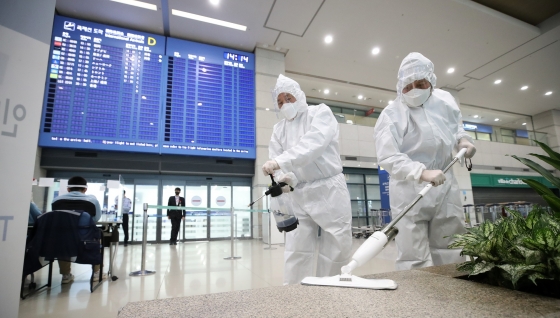 | ¡ã¿µ±¹¹ß ÀÔ±¹ È®ÁøÀڷκÎÅÍ Äڷγª19 º¯ÀÌ ¹ÙÀÌ·¯½º°¡ È®ÀÎµÈ °¡¿îµ¥ 28ÀÏ ÀÎõ±¹Á¦°øÇ×ÀÔ±¹Àå¿¡¼ ¹æ¿ª °ü°èÀÚµéÀÌ ¹æ¿ªÀÛ¾÷À» Çϰí ÀÖ´Ù. /»çÁø=´º½Ã½º |