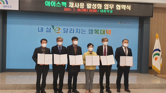 | ¡ã ´ëÀü±¤¿ª½Ã ´ë´ö±¸Ã» 2Ãþ ´ëȸÀǽǿ¡¼ ÁøÇàµÈ ¾ÆÀ̽ºÆÑ Àç»ç¿ë Ȱ¼ºÈ ¾÷¹«Çù¾à. Á¤¼®Çö Çѱ¹È¯°æ°ø´Ü ÃæÃ»±Çȯ°æº»ºÎÀå(¿ÞÂÊ¿¡¼ 2¹ø °), ¹ÚÁ¤Çö ´ë´ö±¸Ã»Àå(¿À¸¥ÂÊ¿¡¼ 3¹ø °) |