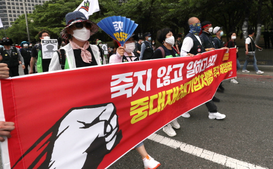 | 2020³â 6¿ù10ÀÏ ¿ÀÈÄ ¼¿ï ¿µµîÆ÷±¸ ¿©ÀÇ´ë·Î¿¡¼ ¿¸° ¹ÎÁÖ³ëÃÑ Áß´ëÀçÇØ±â¾÷ó¹ú¹ý ¿ì¼± ÀÔ¹ý Ã˱¸ °áÀÇ´ëȸ¿¡¼ Âü°¡ÀÚµéÀÌ ÇàÁøÀ» Çϰí ÀÖ´Ù./»çÁø=¸Ó´ÏÅõµ¥ÀÌ ±èÈÖ¼± ±âÀÚ |