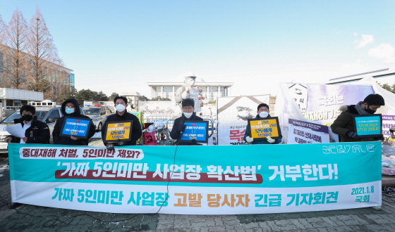 Çѱ¹³ëµ¿Á¶ÇÕÃÑ¿¬¸Í(Çѱ¹³ëÃÑ)Àº Áö³´Þ ¼º¸íÀ» ÅëÇØ 5ÀÎ ¹Ì¸¸ »ç¾÷ÀåÀ» ó¹ú ´ë»ó¿¡¼ Á¦¿ÜÇÑ µ¥ ´ëÇØ ¡°5ÀÎ ¹Ì¸¸ »ç¾÷Àå¿¡¼ ¹ß»ýÇÑ Á×À½°ú 5ÀÎ ÀÌ»ó »ç¾÷Àå¿¡¼ ¹ß»ýÇÑ Á×À½ÀÌ ´Ù¸£Áö ¾ÊÀ½¿¡µµ Á×À½¿¡µµ Â÷º°À» µÎ´Â ÀúÀǰ¡ ¹«¾ùÀÎÁö ¹¯Áö ¾ÊÀ» ¼ö ¾ø´Ù¡±¸ç Á¦Á¤¾È öȸ¸¦ Ã˱¸Çß´Ù.