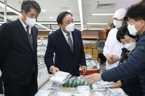 | ¡ã ÀÓÁØÅà ¼öÇùÁß¾ÓȸÀå(¿ÞÂÊ¿¡¼ µÎ ¹øÂ°)ÀÌ ¡¸¼ö»ê¹° Àü¹®¸ÅÀ塹À» ¹æ¹®ÇØ ¼ö»ê¹°À» »ìÆìº¸°í ÀÖ´Ù. (»çÁøÁ¦°ø=¼öÇùÁß¾Óȸ> |