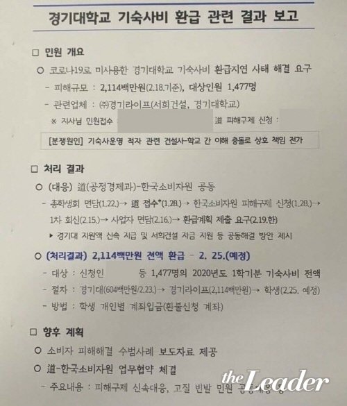 À̾î "±× °á°ú °æ±â´ë¿Í ±â¼÷»ç ¿î¿µ»ç·ÎºÎÅÍ ¿À´Â 25ÀϱîÁö Çлýµé¿¡°Ô ¹Ì»ç¿ë ±â°£ÀÇ ±â¼÷»çºñ Àü¾×À» ȯ±ÞÇϰڴٴ 'È®¾à°ø¹®'À» ¹Þ¾Ò´Ù"¸ç "ȯºÒÀÌ ´Ê¾îÁø °ÍÀº ¾Æ½±Áö¸¸, ¼º½ÇÈ÷ ÇÕÀÇ¿¡ ³ª¼Áֽаæ±â´ë¿Í ¿î¿µ»ç¿¡µµ °¨»çµå¸°´Ù"°í ÀüÇß´Ù.