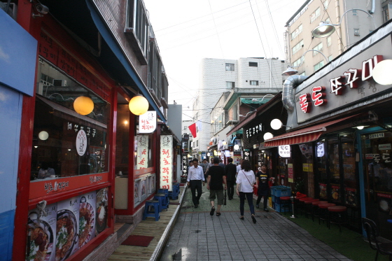 õȣ¿ª°ú °¡±îÀÌ À§Ä¡ÇÑ ¼º³»µ¿¿¡´Â ÁÖ²Ù¹Ì ¸ÔÀÚ°ñ¸ñÀÌ ÀÖ´Ù. 1970³â´ëºÎÅÍ »ý°Ü³ ÁÖ²Ù¹Ì À½½ÄÁ¡ 10¿© °³°¡ 100m°¡ ä ¾È µÇ´Â °ñ¸ñ¿¡ ÁñºñÇÏ´Ù. Áֲٹ̸¦ »ï°ã»ì°ú »õ¿ì¿Í ÇÔ²² ÁÖ¹®Çؼ ¸Ô´Â ÂÞ»ï(ÁÖ²Ù¹Ì+»ï°ã»ì), ÂÞ»õ(ÁÖ²Ù¹Ì+»õ¿ì), ÂÞ»ï»õ(ÁÖ²Ù¹Ì+»ï°ã»ì+»õ¿ì) ¼¼Æ®µµ ÀÖ´Ù. ÀÌ ±¸Ã»ÀåÀº ¡°¸ÅÄÞÇϸ鼵µ ¾Æ»èÇÏ°í ºÎµå·¯¿î ÂÞ»ïÀº ¸ø ¸Ô¾îº» »ç¶÷Àº À־ Çѹø ¸ÔÀº »ç¶÷Àº ¾ø´Â Áßµ¶ÀûÀÎ ¸À¡±À̶ó°í Àû±Ø ÃßõÇß´Ù.